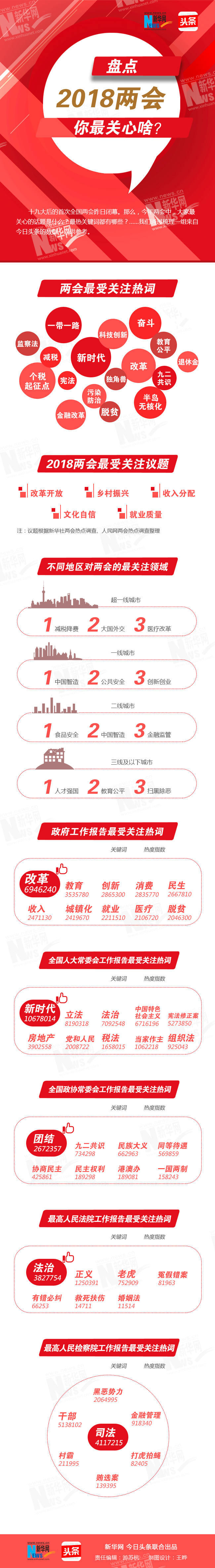 為使兩會報道更加貼近網民,擴大兩會報道宣傳效果,央廣網聯(lián)合今日頭條,探索報道新角度,充分發(fā)揮央廣網前后方采編優(yōu)勢和今日頭條大數(shù)據(jù)統(tǒng)計優(yōu)勢,在2018年全國兩會期間推出了基于PC端、客戶端和社交媒體端不同傳播特點的大數(shù)據(jù)新聞產品。雙方共同推出5篇大數(shù)據(jù)新聞,累計瀏覽量超過1000萬次。