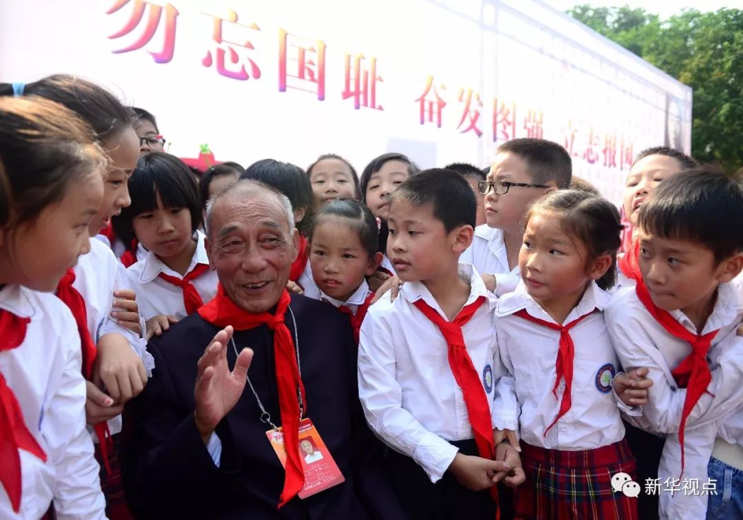 2015年9月18日,抗戰(zhàn)烈士蔡炳炎之子蔡浙生為安徽省合肥市朝霞小學(xué)學(xué)生講述抗戰(zhàn)故事。新華社記者 劉軍喜 攝