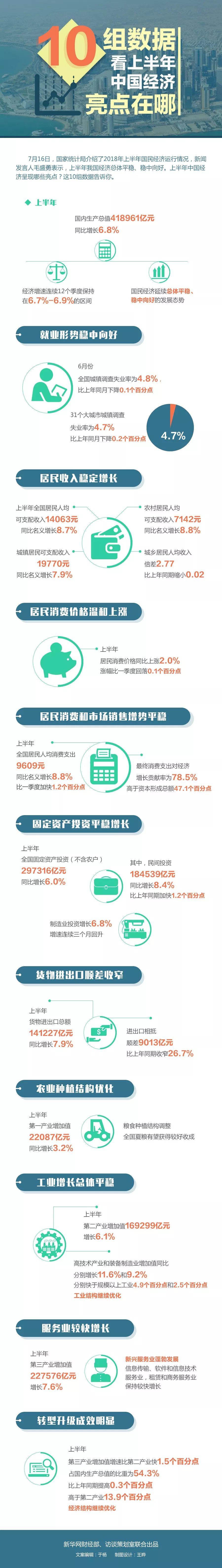 7月16日上午,國(guó)家統(tǒng)計(jì)局公布多項(xiàng)宏觀經(jīng)濟(jì)數(shù)據(jù)。2018年上半年,國(guó)內(nèi)生產(chǎn)總值(GDP)同比增長(zhǎng)6.8%,國(guó)民經(jīng)濟(jì)運(yùn)行延續(xù)總體平穩(wěn),穩(wěn)中向好的發(fā)展態(tài)勢(shì)。