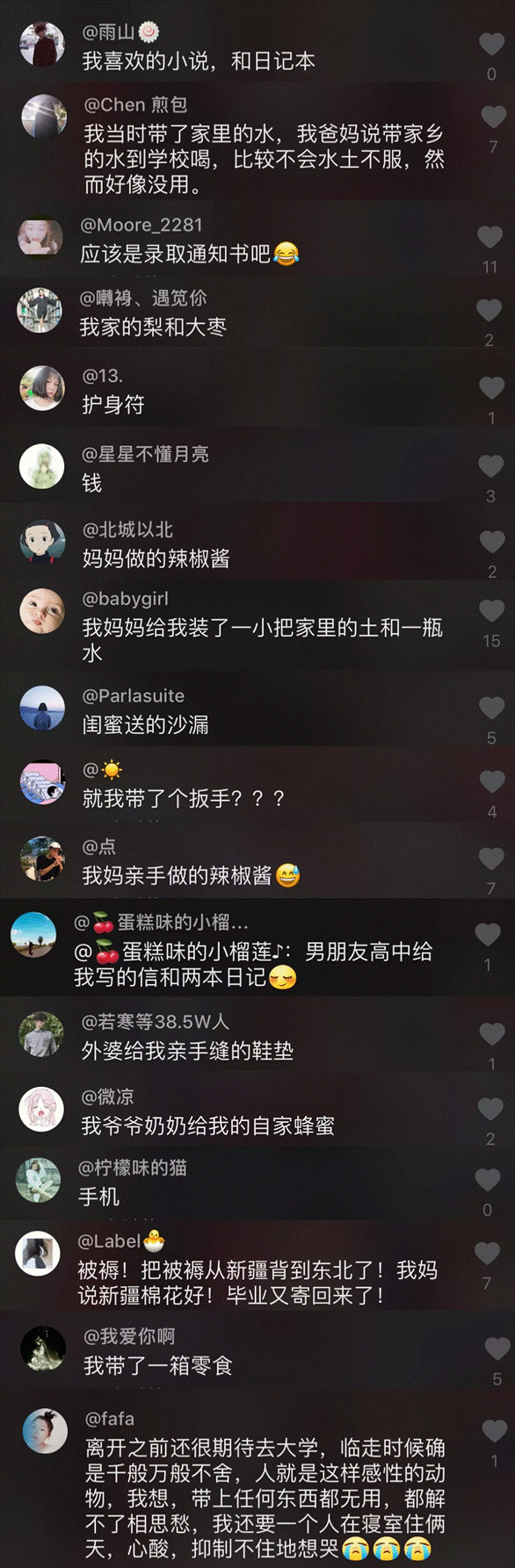 很多網(wǎng)友也在評論區(qū)里紛紛留言,分享自己當初入學時所帶的最特殊的物件。