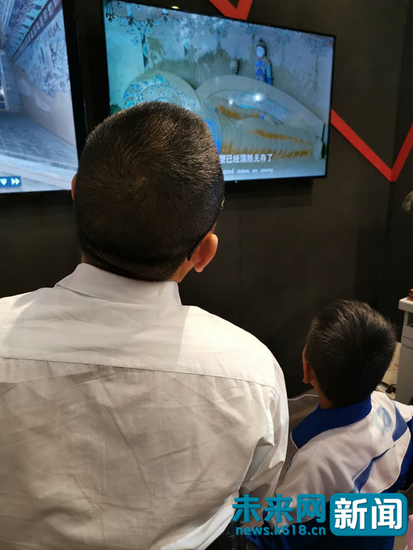在國家文物局展區(qū),來自福州的王先生帶著兒子通過VR、虛擬技術(shù)體驗敦煌文化,兒子在一旁認(rèn)真觀看,并一直問個不停,看得不亦樂乎。王先生告訴未來網(wǎng)(教育公眾號ID:newsk618)記者,通過虛擬體驗感覺就像是身臨其境,這樣的形式孩子更容易接受。他還帶著孩子體驗了良渚博物館、上海博物館。