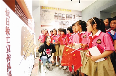江蘇省連云港市東?h安峰鎮(zhèn)中心小學組織學生走進縣革命歷史紀念館,重溫抗戰(zhàn)歷史,感受革命先輩的堅定信仰與革命情懷。張開虎攝/光明圖片
