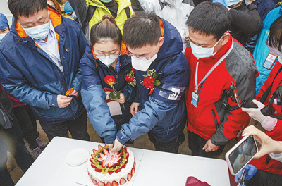 本報武漢3月1日電 (姜泓冰、張赫、葉佳琪、莫佳瑜)2月28日17時左右,一場特殊的婚禮在武漢雷神山醫(yī)院辦公區(qū)舉辦。在醫(yī)務人員的見證下,上海交通大學醫(yī)學院附屬仁濟醫(yī)院肝移植監(jiān)護室25歲的于景海護士和消化科24歲的周玲億護士,舉辦了他們僅用了15分鐘的、簡單而溫馨的婚禮。