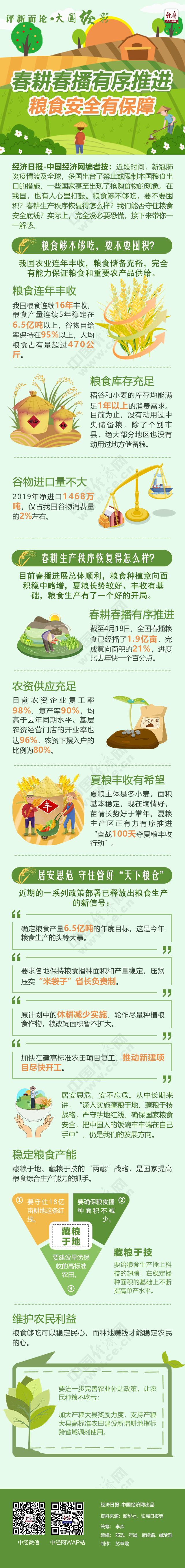 【評新而論·大國經(jīng)彩】圖解:春耕春播有序推進 糧食安全有保障,經(jīng)濟日報-中國經(jīng)濟網(wǎng)編者按:近段時間,新冠肺炎疫情波及全球,多國出臺了禁止或限制本國糧食出口的措施,一些國家甚至出現(xiàn)了搶購食物的現(xiàn)象。在我國,也有人心里打鼓。實際上,完全沒必要恐慌,接下來帶你一一解惑。