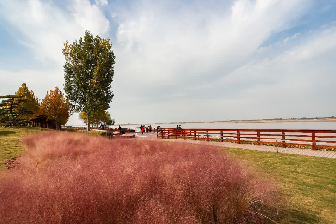建設(shè)中的黃河灘地公園西起江山路,東到花園口黃河大橋,規(guī)劃面積44平方公里,共分為黃河濕地生態(tài)修復(fù)區(qū)、濕地片區(qū)、黃河生態(tài)農(nóng)業(yè)示范區(qū)等14個功能區(qū)。按照惠濟(jì)區(qū)委“慢行系統(tǒng)先行,節(jié)點推進(jìn),水系貫通,分區(qū)實施”的要求,灘地公園目前主要建設(shè)內(nèi)容為南裹頭、海事廣場、渡口廣場三個觀景點和九縱三橫22條60多公里彩色慢行道路,黃河自然風(fēng)光一覽無余。