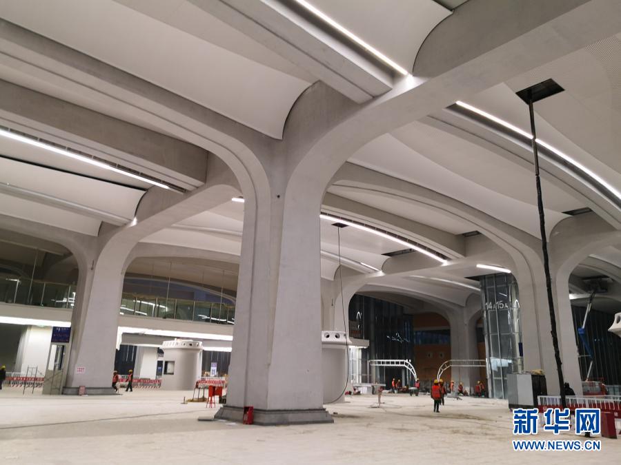 正在裝飾裝修的雄安站內(nèi),機器輕鳴、焊花閃爍,一根根高大的清水混凝土結(jié)構(gòu)梁柱,呈現(xiàn)出花開的形態(tài),工程技術(shù)人員形象地稱它們?yōu)椤伴_花柱”。