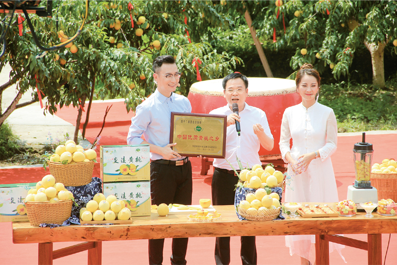 “炎陵黃桃,桃醉天下”,這條炎陵黃桃在央視播出的精準(zhǔn)扶貧公益廣告詞,就是黃詩(shī)燕琢磨出來的。炎陵高寒山區(qū)適合黃桃生長(zhǎng),學(xué)農(nóng)出身的黃詩(shī)燕經(jīng)過認(rèn)真分析后,果斷把黃桃作為特色水果重點(diǎn)培育,逐步讓黃桃規(guī)模大起來、銷售火起來、產(chǎn)業(yè)旺起來,硬是把小黃桃做成了大產(chǎn)業(yè)。如今炎陵黃桃種植面積達(dá)8.9萬畝,采果面積5.2萬畝,總產(chǎn)量5.18萬噸,年產(chǎn)值突破20億元,惠及6萬多群眾,近六成貧困人口靠種植黃桃穩(wěn)定脫貧!把琢挈S桃”于2016年正式注冊(cè)為“國(guó)家地理標(biāo)志證明商標(biāo)”?h黃桃辦主任動(dòng)情地說,“黃書記和黃桃一樣都有一顆晶亮的紅心,引領(lǐng)老區(qū)人民走上脫貧路”。