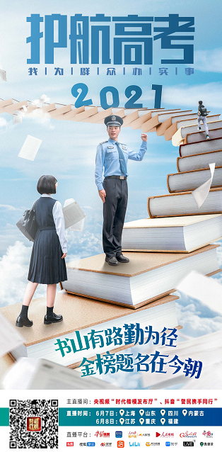 “云”直播將邀請公安英模代表,帶領(lǐng)廣大網(wǎng)友走進內(nèi)蒙古、上海、江蘇、山東、福建、四川、重慶等地高考安保一線,體驗公安機關(guān)護航高考舉措,為考生助力加油。直播以“話題+直播+點贊”的形式記錄2021年高考,見證考生的青春激揚與民警的溫暖守護,生動展示公安機關(guān)全力做好2021年高考安保工作的舉措成效和廣大民警忠誠履職、一心為民的良好精神風(fēng)貌。