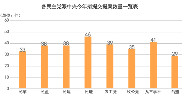 據(jù)初步了解,目前民革、民盟、民建、民進(jìn)、農(nóng)工黨、致公黨、九三學(xué)社、臺(tái)盟今年擬向全國(guó)政協(xié)提交提案共計(jì)334件(其中,黨派中央提案共299件,九三學(xué)社界別提案35件),涉及經(jīng)濟(jì)金融、資源環(huán)境、教育文化、醫(yī)藥衛(wèi)生、社會(huì)服務(wù)、科學(xué)技術(shù)等各領(lǐng)域。