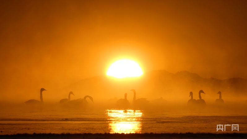 鏡頭里的青海|青海湖畔天鵝沐浴2024年第一縷陽光