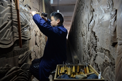 他認(rèn)為,木雕本身就是國家級非物質(zhì)文化遺產(chǎn),這件作品融合了浪漫主義和現(xiàn)實(shí)主義,是對傳統(tǒng)文化傳承和創(chuàng)造。用木雕的形式展現(xiàn)了中華民族的偉大文明,藝術(shù)雕刻長廊按照黃河與長江兩河流域劃分為《黃河文化》與《長江文化》兩部分,涵蓋地理、科技、人文、宗教、民俗、勞作、生息、服飾、藝術(shù)、交流等十個(gè)方面,置身其中,能夠?qū)χ腥A歷史文化有一個(gè)全面了解!盎氐侥镜癖旧,要摘下一個(gè)吉尼斯紀(jì)錄,也是輕而易舉!