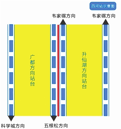 四河站身兼“中間站+端頭站+換乘站”。列車在這里將出現(xiàn)開往科學(xué)城方向和五根松方向兩種不同路徑