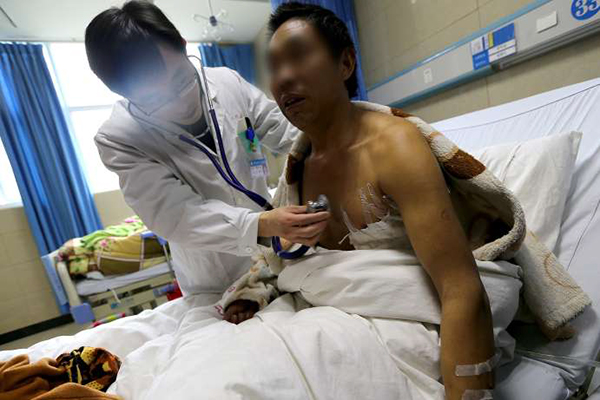 “這種心臟破裂傷是非常嚴重的危重癥,很多病人來不及被送到醫(yī)院,能被成功救治的不到30%。”四川省人民醫(yī)院資陽醫(yī)院普外一科主治醫(yī)師鄭中龍說。鄭中龍仔細看了檢查結(jié)果,發(fā)現(xiàn)伍先生的左胸、心包內(nèi)的積血、積液量超過1500ml,失血量較大。但不幸中的萬幸,大量出血后凝結(jié)的血塊,恰好堵在伍先生左心室的貫穿傷口上,短暫地控制了出血,為下一步的救治爭取了時間。