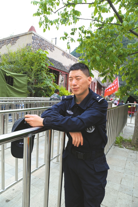 26日上午11點(diǎn),茂縣疊溪新磨村,陽光射在臉上有點(diǎn)火辣。樹蔭下的鐵護(hù)欄旁,剛剛輪換下來的高猛,用帽子扇著風(fēng),一臉汗?jié)n。