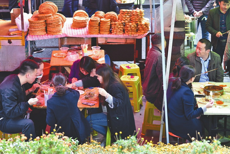 他說的這個(gè)地方,是成都鬧市區(qū)的一條小巷叫小河街,每周五這里都會(huì)有一場(chǎng)新疆美食大巴扎,如今已持續(xù)一年多了!鞍驮笔蔷S吾爾語,意為集市,每到“巴扎天”(多在每周五或周日)人們都會(huì)過去趕巴扎。
