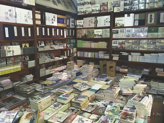 20平方米的書店里,兩萬余本連環(huán)畫占滿了三面墻。