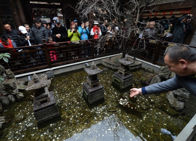 寬窄巷子記憶四川館內(nèi),一個(gè)10平方米不到的觀光水池底,密密麻麻地鋪著1元、5角等面額的硬幣,難以計(jì)數(shù)。7日上午,成都商報(bào)記者來(lái)到景區(qū)該水池邊發(fā)現(xiàn),往來(lái)游人掏出硬幣扔向池中,樂(lè)此不疲。對(duì)此,場(chǎng)館工作人員十分頭痛,原來(lái)這個(gè)水池并不是許愿池,頻繁的投放硬幣還影響到了池中觀賞魚(yú)的生存。民俗專(zhuān)家袁庭棟表示,見(jiàn)水池就扔硬幣,并沒(méi)有什么意義。
