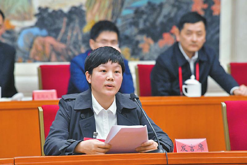 10月19日,倪雪梅在小組討論中發(fā)言。