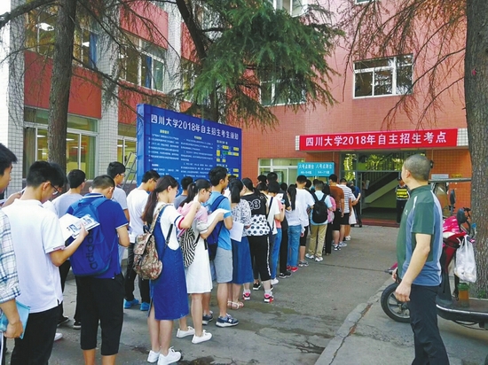從6月10日開始,省內(nèi)四川大學(xué),西南交大等高校陸續(xù)開始自主招生考試。盡管7、8日的全國統(tǒng)考已經(jīng)落下帷幕,但是對于很多要參加自主招生的學(xué)生來說,高考還在繼續(xù)。據(jù)了解,此番自主招生考試的競爭非常激烈,以四川大學(xué)為例,報(bào)名5970人,通過了首輪資格審查進(jìn)入自主招生考試環(huán)節(jié)的只有3100多人,而最終能夠通過享受自主招生優(yōu)惠政策被錄取的不超過460人。值得一提的是,四川大學(xué)今年首次開啟了“網(wǎng)絡(luò)安全人才卓越計(jì)劃”,如果被認(rèn)定為“出類拔萃”的考生,學(xué)?梢韵蚪逃可暾埰聘皲浫,而且沒有高考分?jǐn)?shù)的限制。據(jù)介紹,西南交大今年自主招生的計(jì)劃也只有260人,這兩所學(xué)校的自主招生錄取情況都將于6月22日之前面向社會(huì)公示。