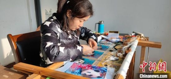 1月17日,位于成都高新區(qū)的蜀菁館工作室內(nèi),幾位繡娘正在刺繡。不大的工作室里,擺滿了蜀錦、蜀繡作品,其中多以大熊貓為主,均通過數(shù)字圖片處理技術設計,這也是“AI新錦繡”與傳統(tǒng)蜀繡最大的區(qū)別。
