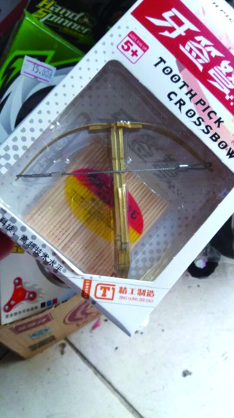 記者在濟(jì)南市區(qū)幾所學(xué)校附近的小商店并沒有見到這種“牙簽弩”。但隨后,濟(jì)南科苑小學(xué)、義和小學(xué)、名士小學(xué)的家長(zhǎng)告訴記者,他們?cè)趯W(xué)校附近的小商店里的確看到過這種“牙簽弩”有銷售。