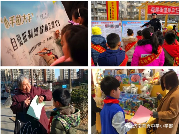 鑄安全 師生們假期開展了“禁止燃放煙花爆竹”的各類倡議活動(dòng),發(fā)傳單、條幅簽名、安全宣講。社區(qū)的叔叔阿姨、爺爺奶奶連連為他們豎起大拇指!