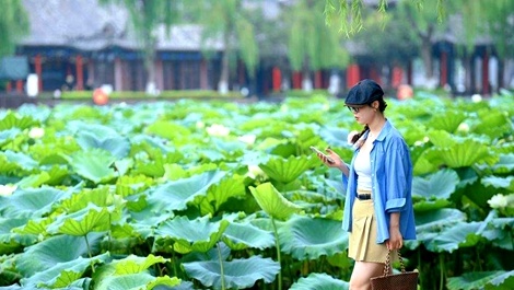眼下已進(jìn)入初秋。大明湖南岸的荷花依舊美麗綻放,花香四溢。