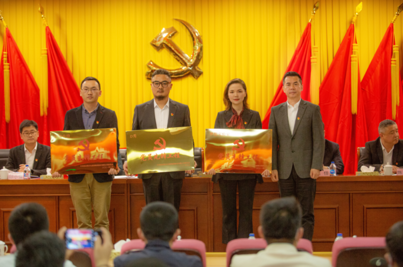 會(huì)上還宣讀了開(kāi)展黨員“亮身份、做表率”活動(dòng)的實(shí)施方案,通過(guò)在全體黨員中推行“黨員先鋒崗”和在集團(tuán)重大項(xiàng)目、重點(diǎn)工作中設(shè)置“黨員先鋒工程”,積極發(fā)揮黨員的先鋒模范作用,引領(lǐng)全體員工擔(dān)當(dāng)作為、攻堅(jiān)克難。沈波分別為“D秀”黨員先鋒工程、“夢(mèng)想試驗(yàn)室”黨員先鋒工程、“職能先鋒”黨員先鋒工程代表授牌。