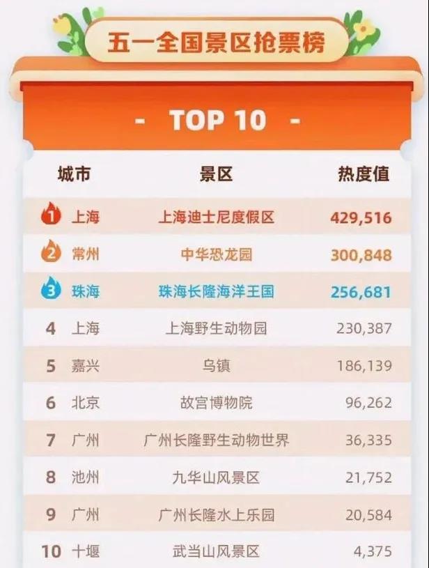 節(jié)日期間,環(huán)球恐龍城旅游度假區(qū)迎來(lái)了全國(guó)各地43.7萬(wàn)游客,其中,中華恐龍園景區(qū)位列飛豬旅行“五一全國(guó)景區(qū)搶票榜”第二,并榮登驢媽媽《2021五一出游總結(jié)報(bào)告》“全國(guó)熱門景區(qū)TOP10”和“華東熱門景區(qū)TOP10”雙榜。
