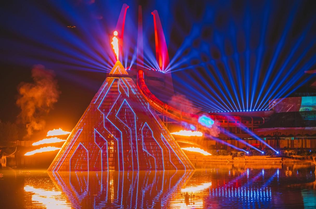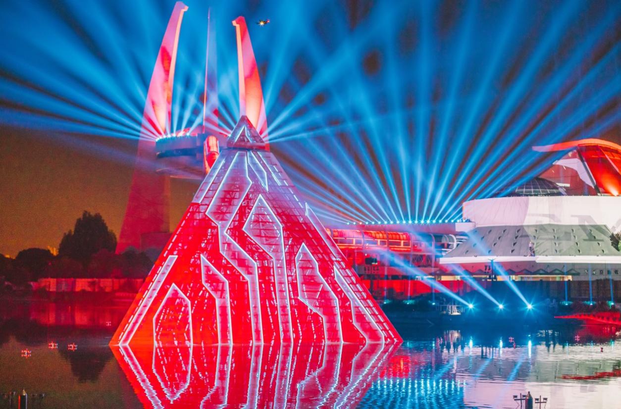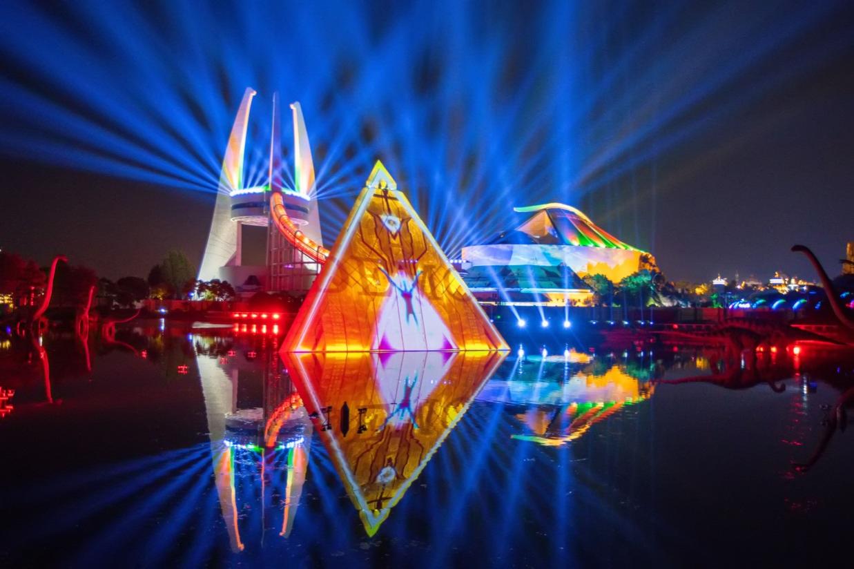 為打造全方位的沉浸式效果,《D秀》團隊歷時一年多的技術(shù)研發(fā),以數(shù)字多媒體聲光演藝為主要手段,以中華恐龍館為核心,對周圍的空間格局、觀演環(huán)境等進(jìn)行了全方位的考量。在精心挑選的位置上新增了數(shù)百個全新的燈光效果裝置,力求從觀眾入場開始,就能夠根據(jù)故事節(jié)奏設(shè)置,營造不同的現(xiàn)場氛圍,并能夠配合劇情發(fā)展,帶來進(jìn)一步升級的觀賞感受。據(jù)悉,為《D秀》特別定制的水中升降三維立體數(shù)字光影裝置也會在當(dāng)天亮相,這將成為此次大秀的點睛之筆。