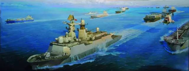 周補(bǔ)田 《護(hù)航亞丁灣》油畫