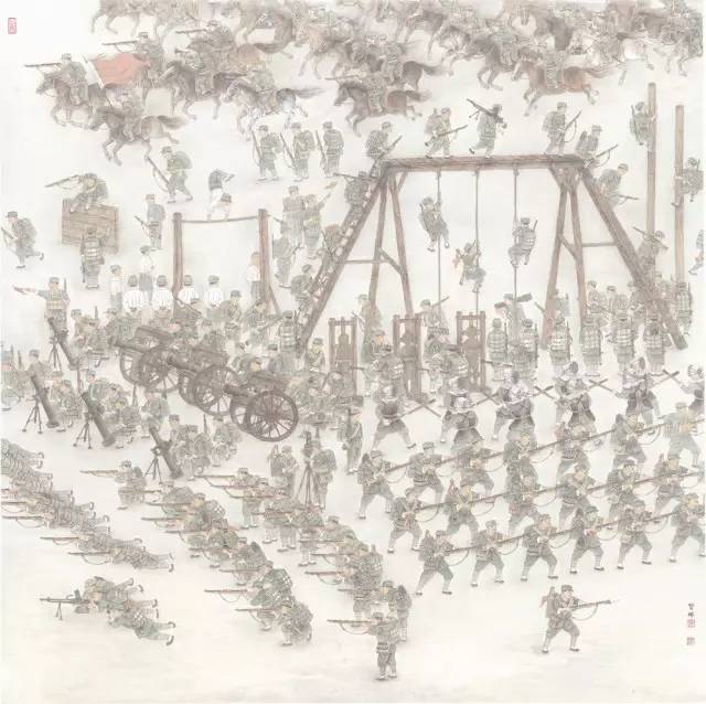 2014年3月,油畫《突擊》入選“世紀(jì)追夢(mèng)一百年中國時(shí)代圖典展”。 (中華藝術(shù)宮)
