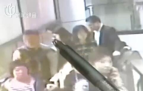 4月24日早高峰,曹女士在地鐵4號線浦東大道站出站,站在擁擠的自動扶梯上,她感覺右腿膝蓋窩被人碰了一下,就回頭看了一眼。