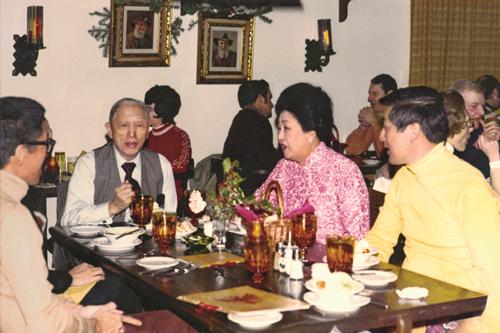 上世紀(jì)70年代,顧維鈞(左二)、嚴(yán)幼韻和朋友聚餐。