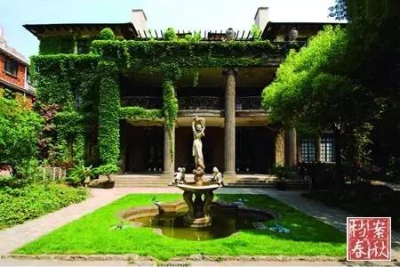 宅前庭院的中軸線上置一座由漢白玉制成的普緒赫雕像噴泉,成為整個(gè)庭園的靈魂。這座噴水池,是整個(gè)建筑的精髓所在,栩栩如生的女子雕像與二樓露臺(tái)遙遙相望,所有知道雕像來歷和故事的人,都會(huì)對(duì)這巧妙的設(shè)計(jì)背后的寓意,心領(lǐng)神會(huì)。
