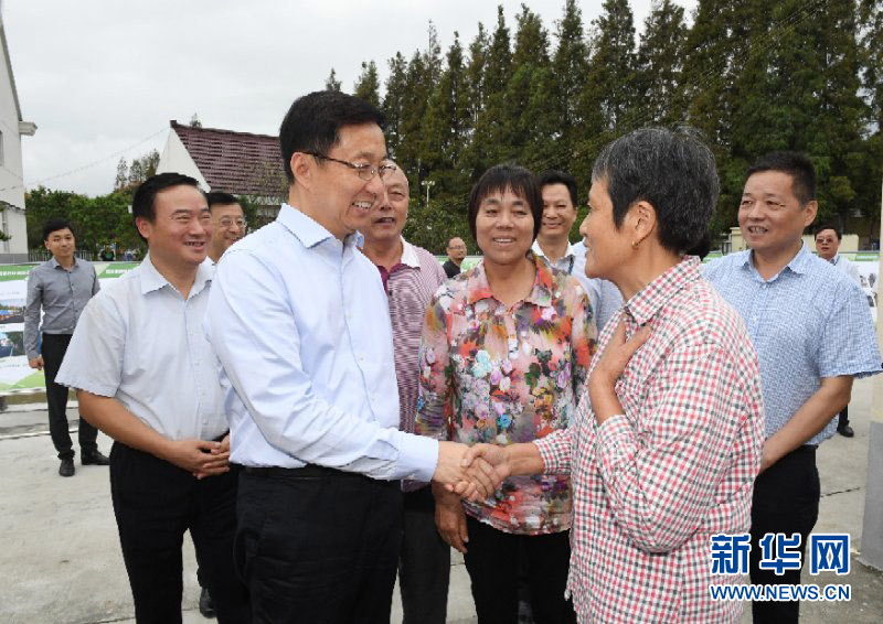 9月27日,韓正來(lái)到浦東合慶鎮(zhèn)勤奮村了解“五違”整治最新進(jìn)展,與村民黃月琴老媽媽交流。