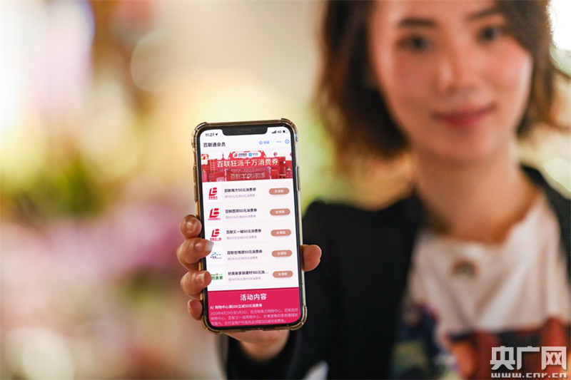 上海消費(fèi)者通過(guò)支付寶領(lǐng)取“百聯(lián)消費(fèi)券”(央廣網(wǎng)發(fā) 阿里巴巴供圖)