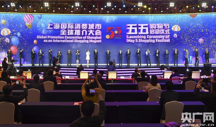 上海國際消費(fèi)城市全球推介大會(huì)暨“五五購物節(jié)”啟動(dòng)儀式今晚(4日)在浦江之濱舉行(央廣網(wǎng)發(fā) 張馳 攝)