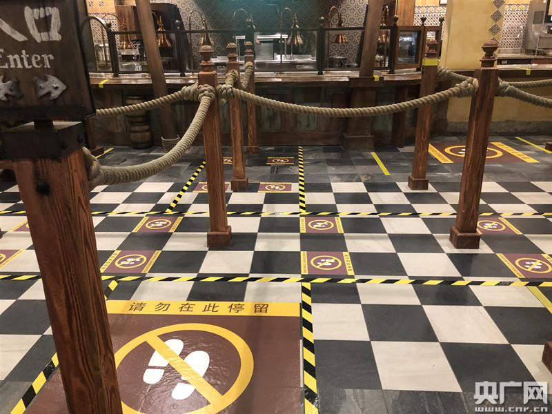 等待區(qū)域設置間距提醒(央廣記者楊靜 攝)