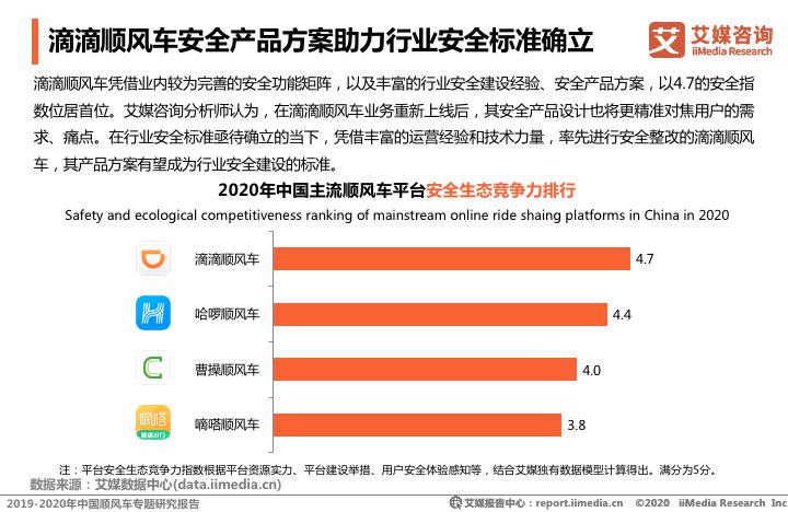 iiMedia Research(艾媒咨詢)數(shù)據(jù)顯示,滴滴順風(fēng)車以4.7的安全指數(shù)位居首位。滴滴順風(fēng)車憑借業(yè)內(nèi)較為完善的安全功能矩陣,以及豐富的行業(yè)安全建設(shè)經(jīng)驗(yàn)、安全產(chǎn)品方案,在安全生態(tài)競爭力上處于行業(yè)領(lǐng)先地位。