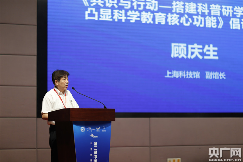 在開幕式上,上?萍拣^副館長顧慶生發(fā)布《共識與行動——搭建科普研學合作平臺,凸顯科學教育核心功能》倡議書。并作主旨報告《從場館資源到研學課程:探索與實踐》。