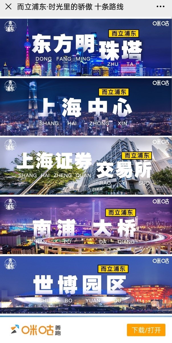 除視頻展播外,“而立浦東·時(shí)光里的驕傲”線(xiàn)上跑活動(dòng)也在咪咕善跑等平臺(tái)推出,以《而立浦東》紀(jì)錄片中出現(xiàn)的地標(biāo)性建筑為打卡目標(biāo),如上海中心、東方明珠塔、世博園等,這些打卡點(diǎn)或是伴隨著浦東開(kāi)發(fā)開(kāi)放而誕生的重大項(xiàng)目,或是浦東開(kāi)發(fā)開(kāi)放之后豎立的新地標(biāo)性建筑,見(jiàn)證著浦東開(kāi)發(fā)開(kāi)放30年的歷史變遷。參與者能夠在運(yùn)動(dòng)中感受上海的城市脈搏,用足跡丈量浦東的發(fā)展歷程,同時(shí)領(lǐng)略浦東開(kāi)發(fā)開(kāi)放的恢弘成就。