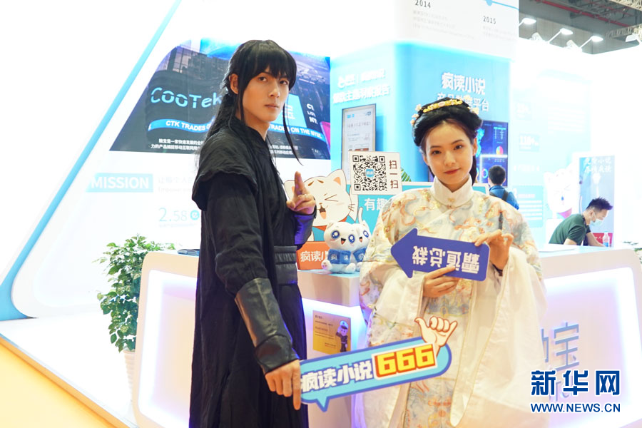 兩名模特在長三角文博會現(xiàn)場演繹瘋讀小說里的角色。新華網(wǎng)馮麗 攝