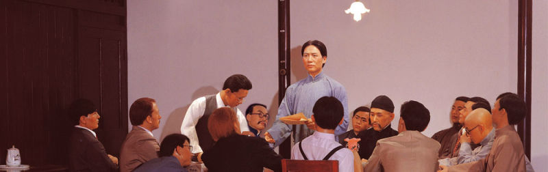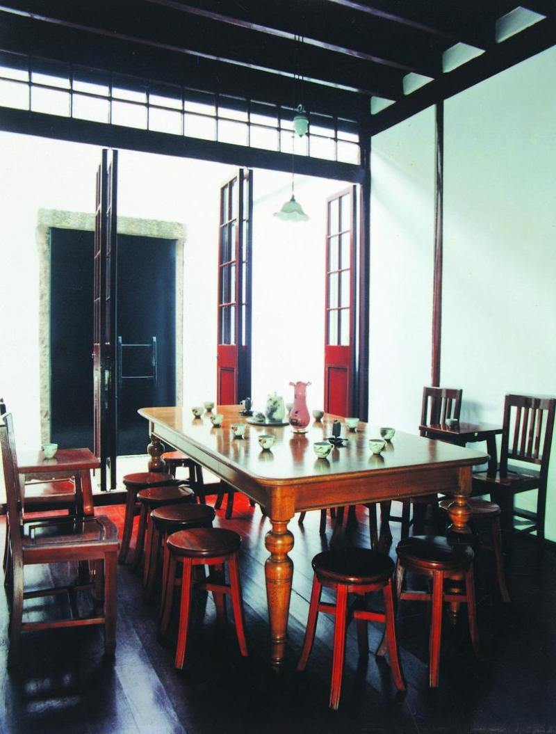 這是一處典型的上海石庫門建筑,青墻紅磚交錯(cuò),烏黑木門配一對銅環(huán),院內(nèi)是一上一下的大開間。李漢俊把一樓的客堂間布置成會(huì)場。一個(gè)長方形餐桌,十幾把圓形椅凳,15名年輕人、包括兩個(gè)高鼻梁老外,帶著興奮心情齊聚于此。