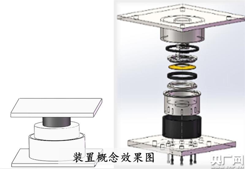 帶剛度自適應特性的三維震振雙控裝置概念效果圖(本文圖片:央廣網(wǎng)發(fā) 同濟大學供圖)