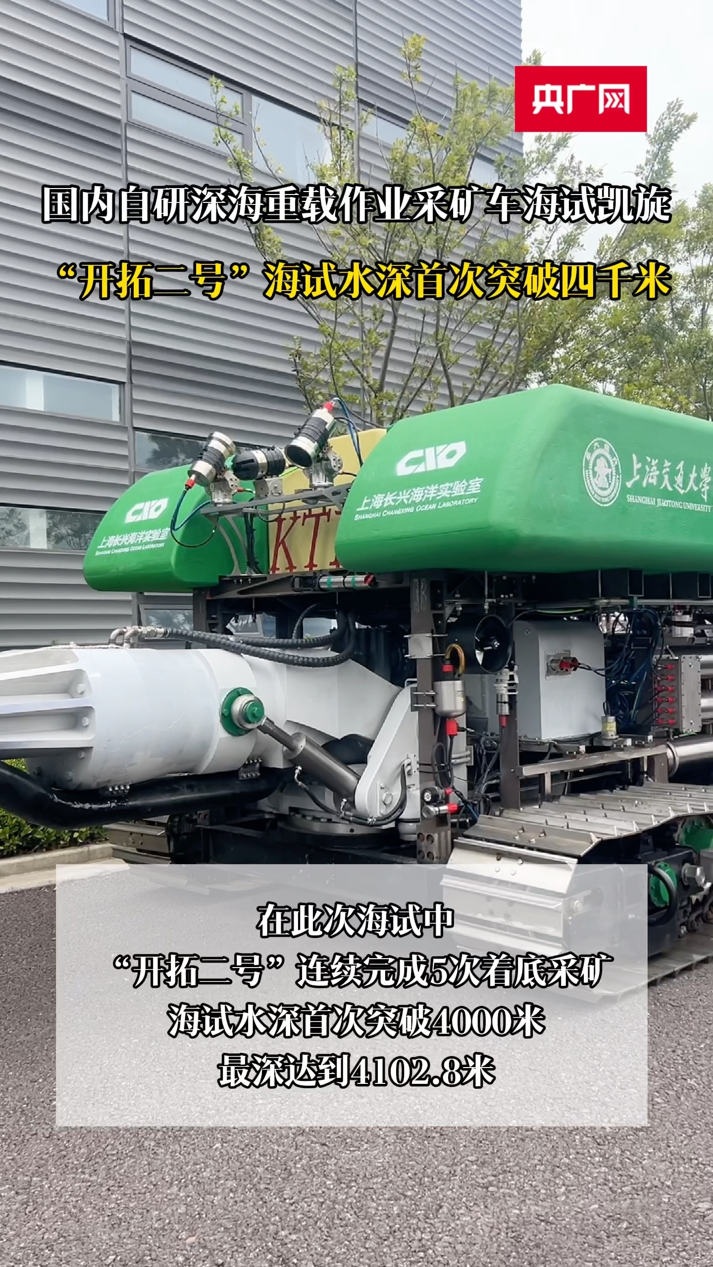 國內(nèi)自研深海重載作業(yè)采礦車海試凱旋,“開拓二號”海試水深首次突破四千米