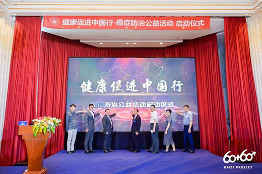中國健康促進(jìn)基金會(huì)常務(wù)副理事長兼秘書長徐卸古、中國健康促進(jìn)基金會(huì)副秘書長兼癌癥防治發(fā)展專項(xiàng)基金管理委員會(huì)副主任委員席立鎖、中國健康促進(jìn)基金會(huì)癌癥防治發(fā)展專項(xiàng)基金管理委員會(huì)主任委員崔寶善、中國健康促進(jìn)基金會(huì)癌癥防治發(fā)展專項(xiàng)基金專家委員會(huì)副主任委員張景紅、廣東白澤健康科技有限公司董事長白宗科、上海市品牌授權(quán)經(jīng)營企業(yè)協(xié)會(huì)創(chuàng)始人楊云、上海市癌癥康復(fù)俱樂部袁正平共同啟動(dòng)“健康促進(jìn)中國行-癌癥防治公益活動(dòng)”。
