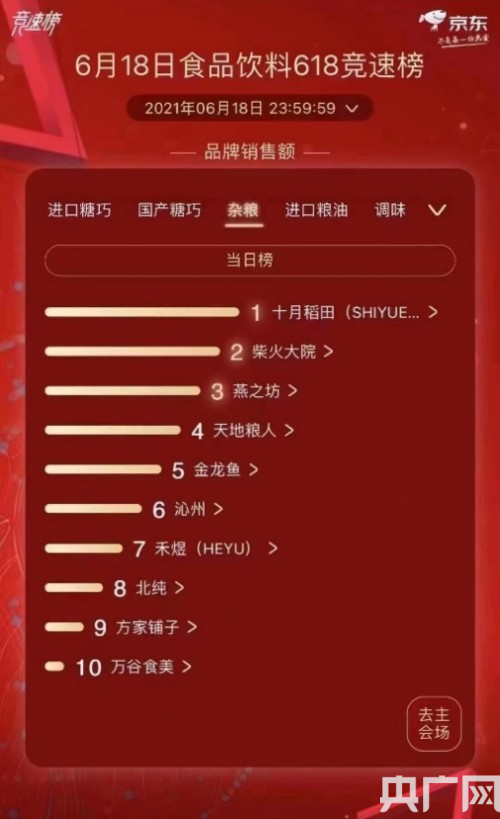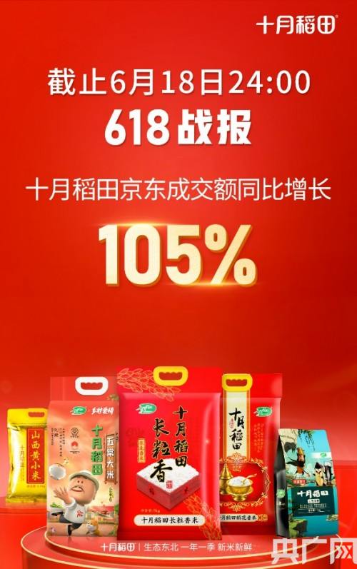 央廣網(wǎng)北京6月22日消息(記者 陳祥銳 通訊員 羅云)“6·18”電商大促期間,十月稻田再創(chuàng)佳績(jī)。截至6月18日24:00,十月稻田在京東成交額同比增長(zhǎng)105%,牢牢占據(jù)京東糧油榜和京東雜糧榜第一名。6月18日,十月稻田在天貓超市僅半小時(shí)便趕超去年全天銷量。 截至6月20日,十月稻田旗艦店位居天貓“6·18”熱度榜第一名。