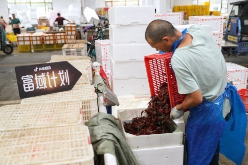 抖音電商推出的“富域計劃”旨在借助興趣電商,挖掘源頭好貨,幫助地方農特產品和品牌商家獲得市場新增量,助其銷往全國市場。湖北潛江被譽為“小龍蝦之鄉(xiāng)”,全市“蝦稻共作”面積達85萬畝,蝦—稻產業(yè)綜合產值達520億元,年加工能力35萬噸,加工出口量連續(xù)16年位居全國前列。