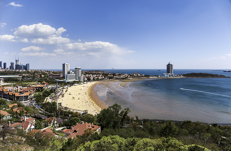 走進(jìn)市民中心,先映入眼簾的是面積30多平方米的曲面透明展示屏,上方直通樓頂玻璃頂棚,后方設(shè)置了多個(gè)環(huán)繞式展示架,已經(jīng)成為青島新的“網(wǎng)紅打卡地”。
